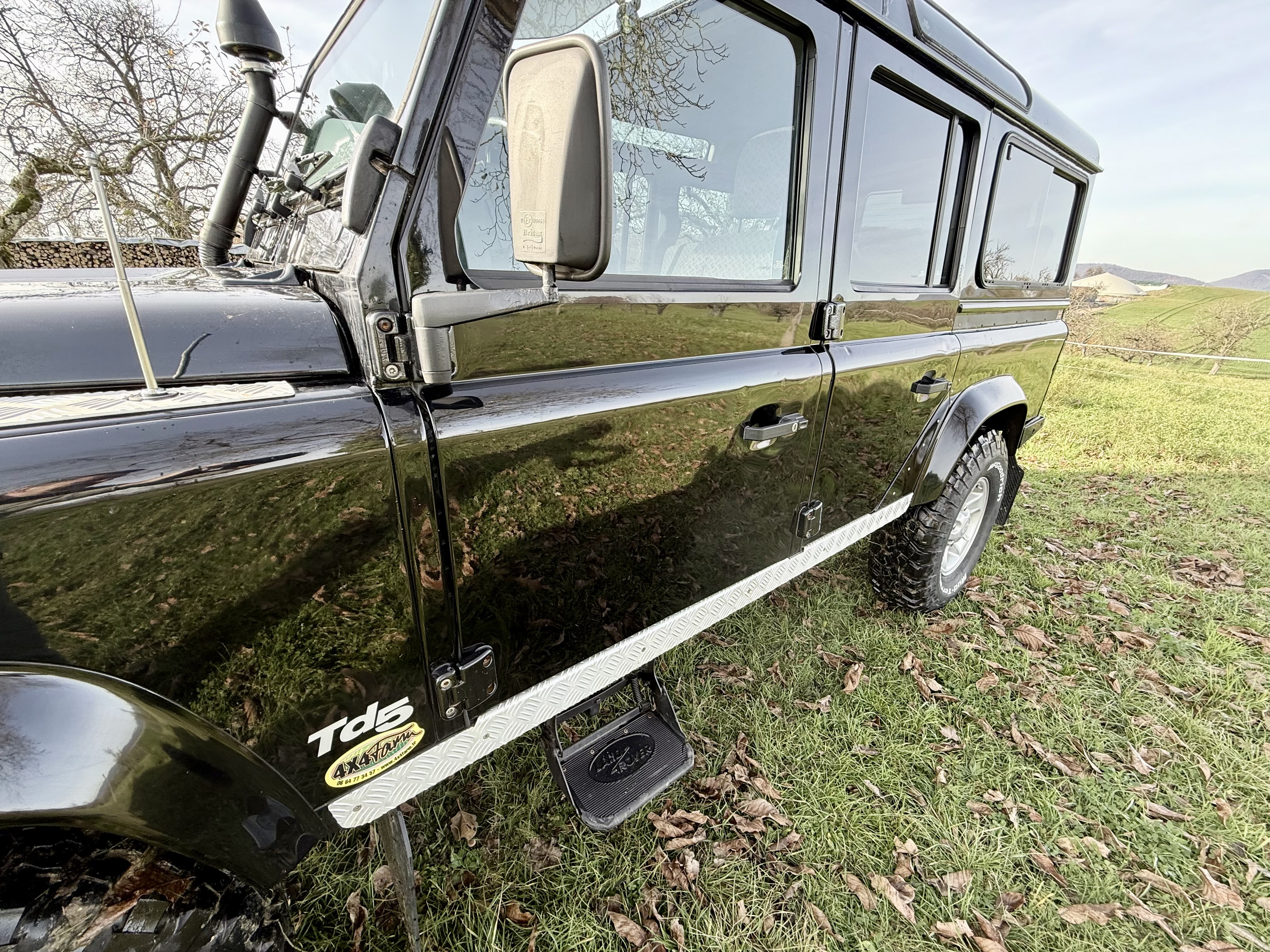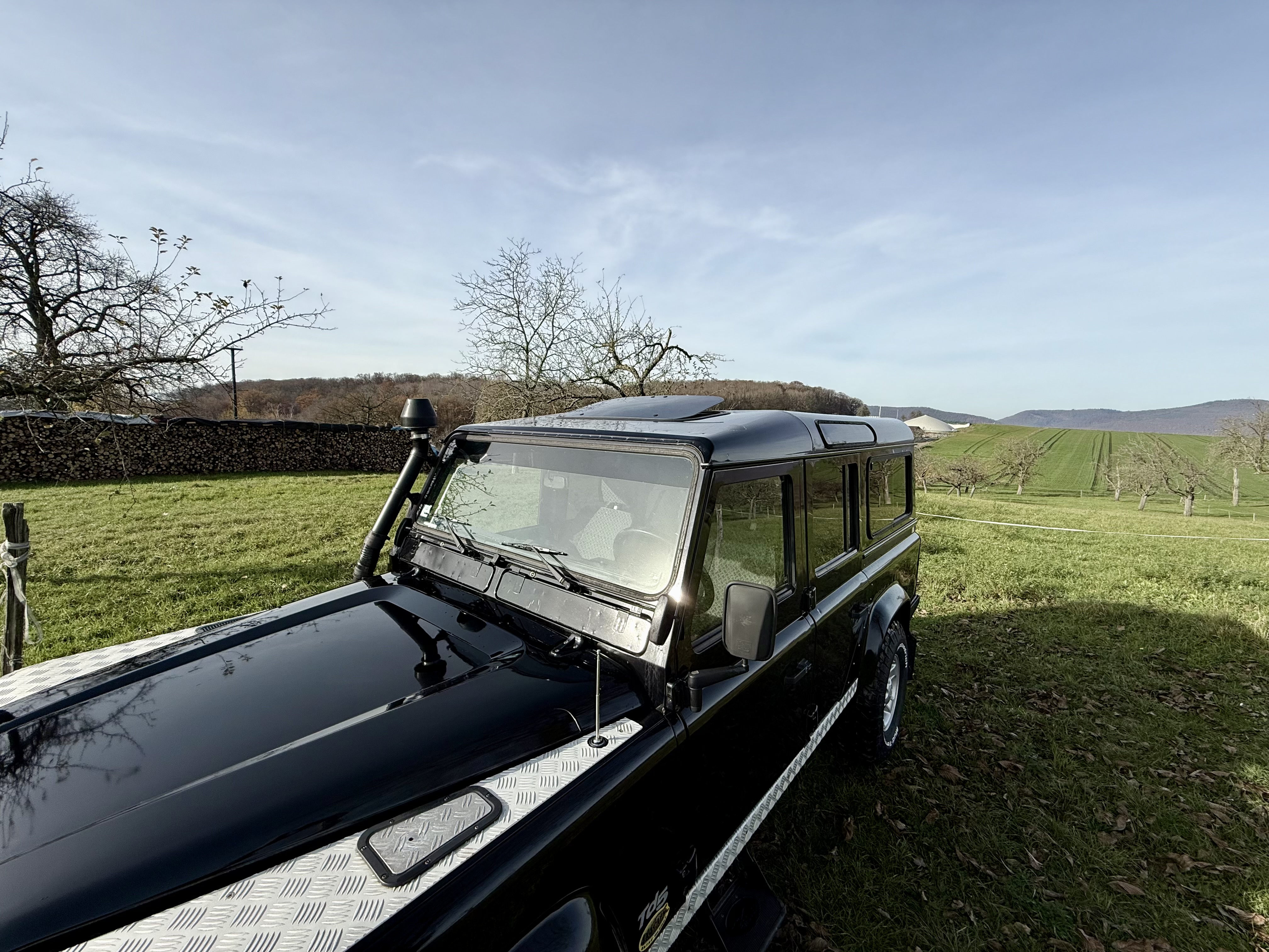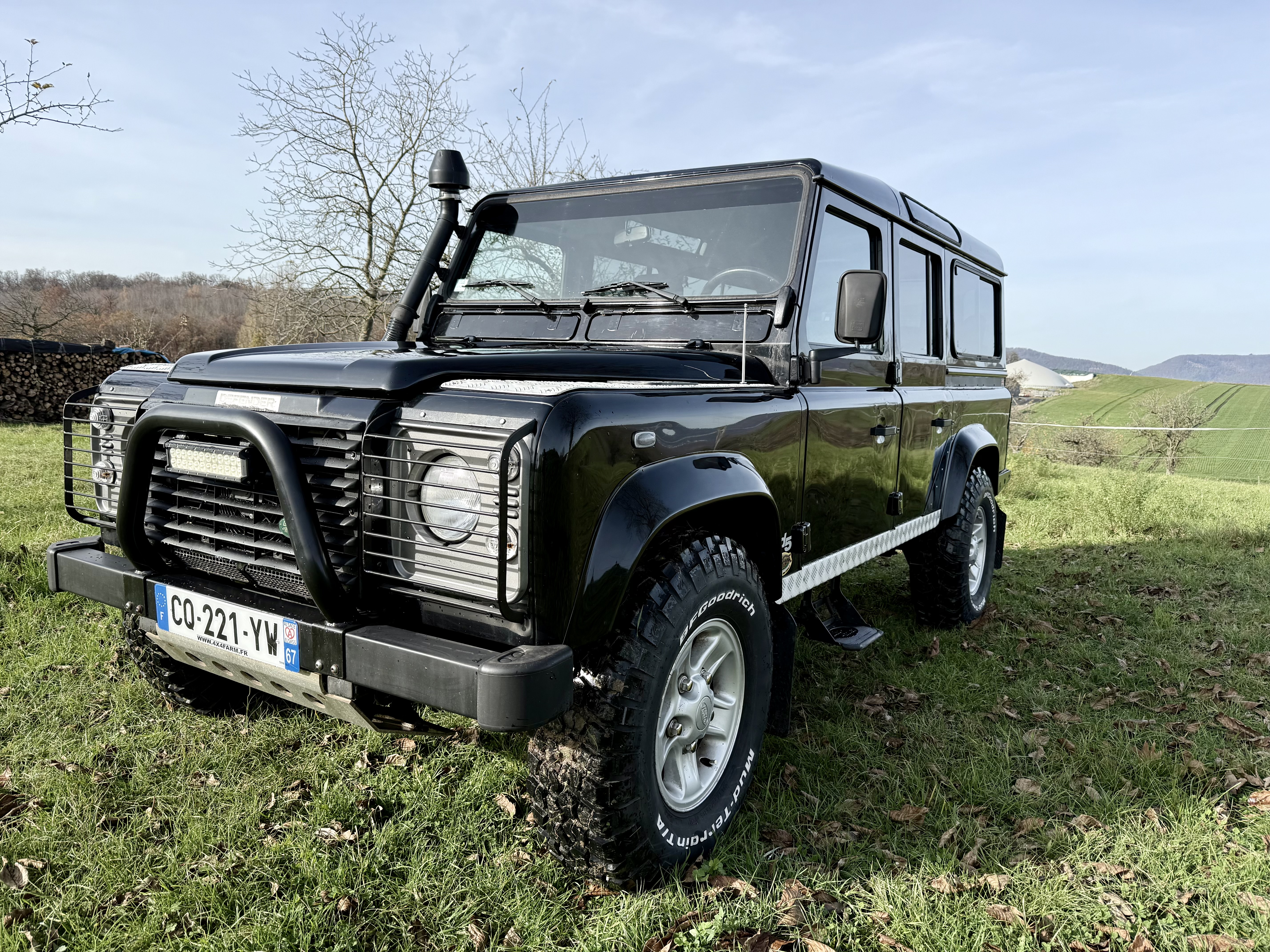 DEFENDER 110 TD5 Station Wagon 9 places Année 01/2003 moteur 15P Kilométrtage 176000 Jantes aluminium BOOST Protections feux avant Protège carter aluminium barre à LED avant Schnorkel Pack aluminium ailes avant et bas de caisses Marche pied avant arrière Bavettes de roues caoutchouc Vitres Sur teintées arrière Bumperette arrière Phare de travail arrière Attelage 3500KG Roues de secours sur bras amovible Vérouillage centralisé Vitres électriques Climatisation Autoradio CD,Haut-parleurs avant-arrière Cubbybox central avant Strapontins arrière amovibles. Suivi entretiens disponibles Révision effectuée Aucun frais à prévoir VDV